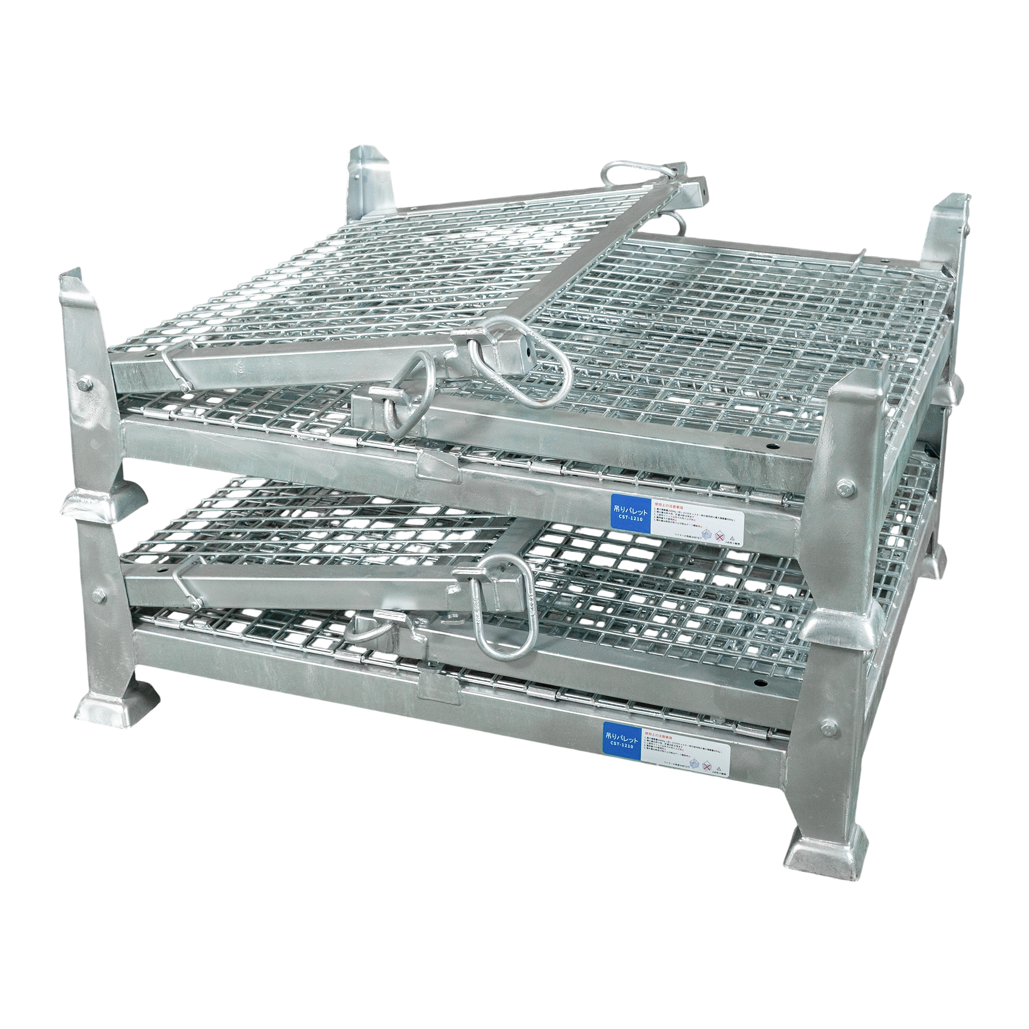 吊りパレット(吊りボックス・吊りコンテナ・リフティングパレット)は、ユニック車やクレーンを使った資材の保管、運搬、そして積み下ろし作業を安全かつ簡単に実現します。強度と耐久性に優れながらも軽量設計のため、取り扱いが容易です。さらに、積み重ねて保管できるため、限られたスペースを最大限に有効活用し、倉庫や現場の効率化に貢献します。