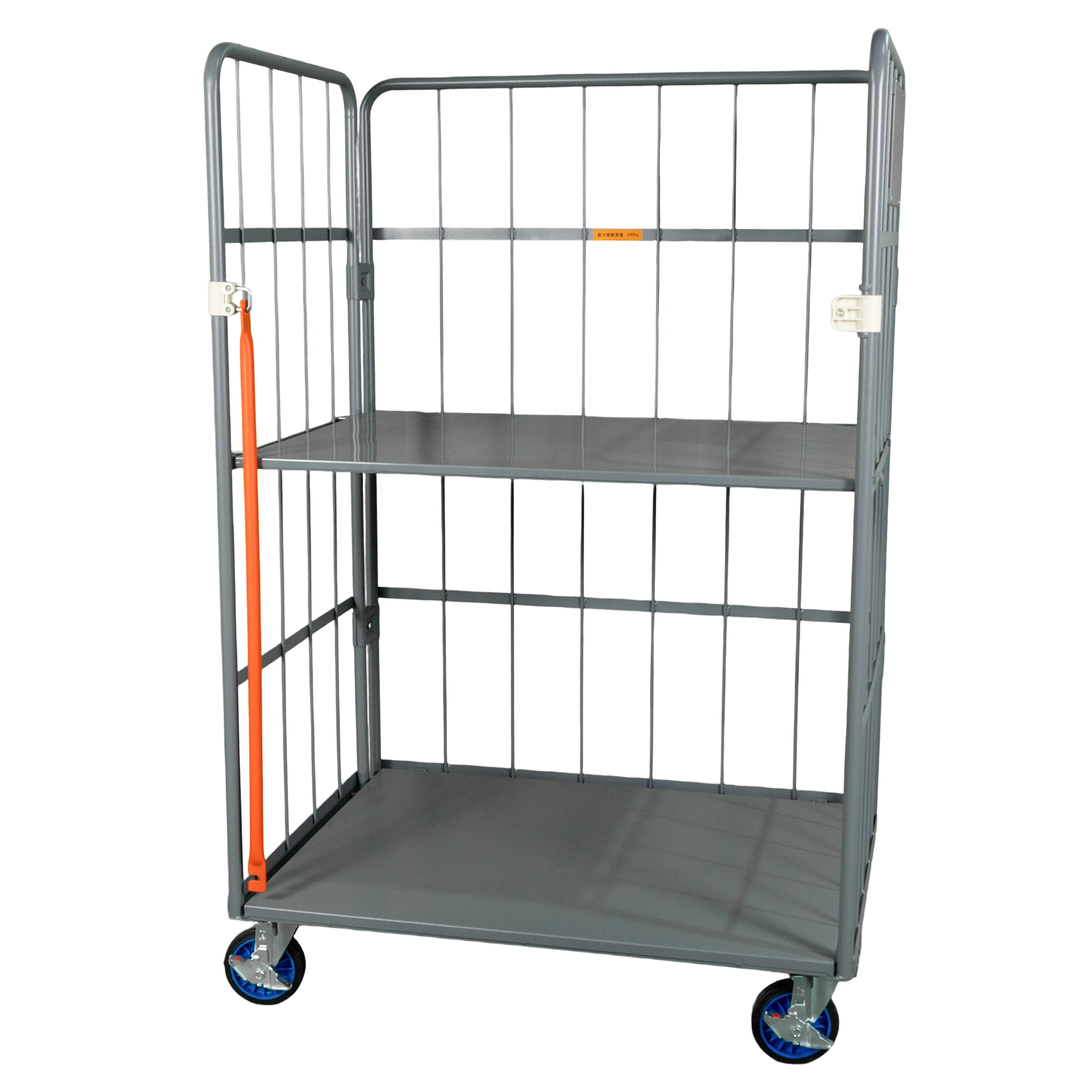 中間棚は、両サイドのフックをカゴ車本体のサイドパネルに引っ掛けるだけで、簡単に脱着ができます。