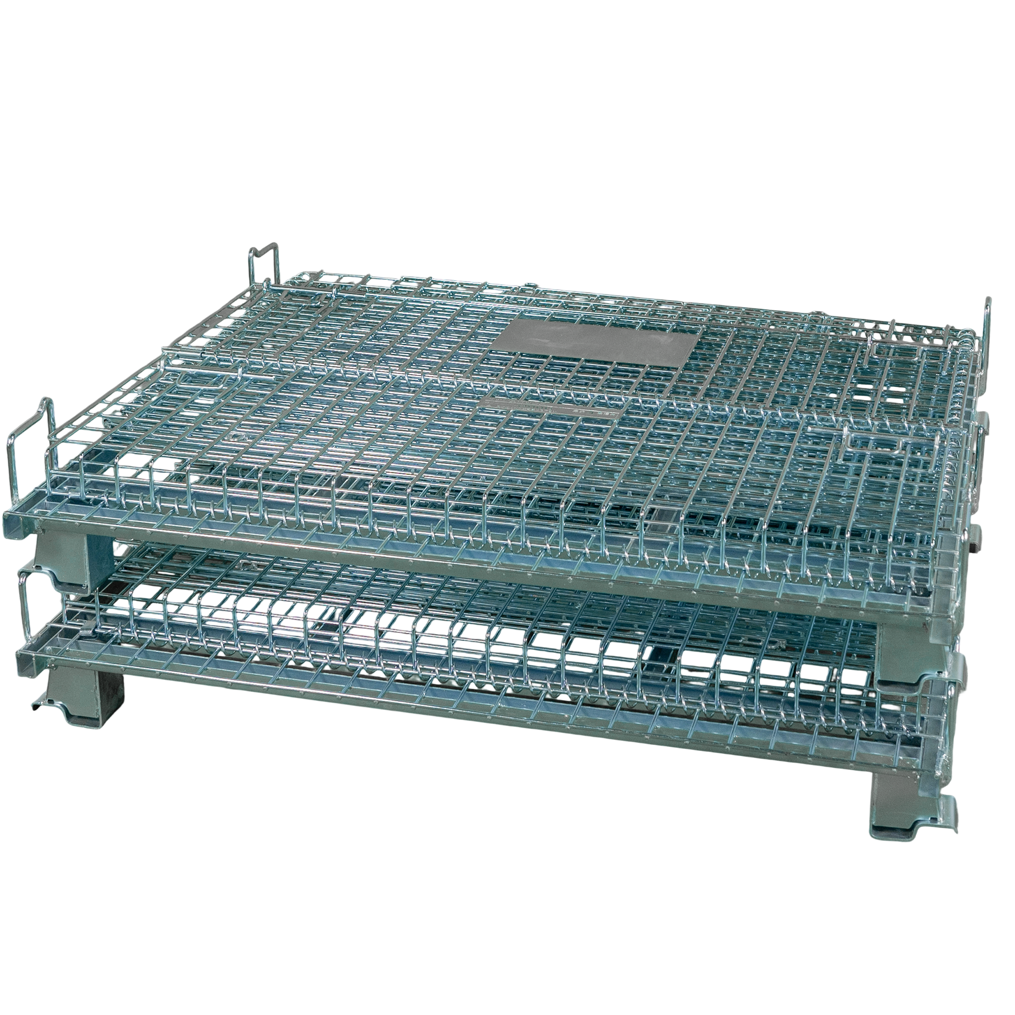 軽量かつ強度に優れたメッシュパレットで、フォークリフトで荷役作業が可能です。段積み保管により、倉庫スペースの有効活用ができます。折りたたみが可能ですので、未使用時に折りたたんだ状態での保管や空箱輸送ができます。