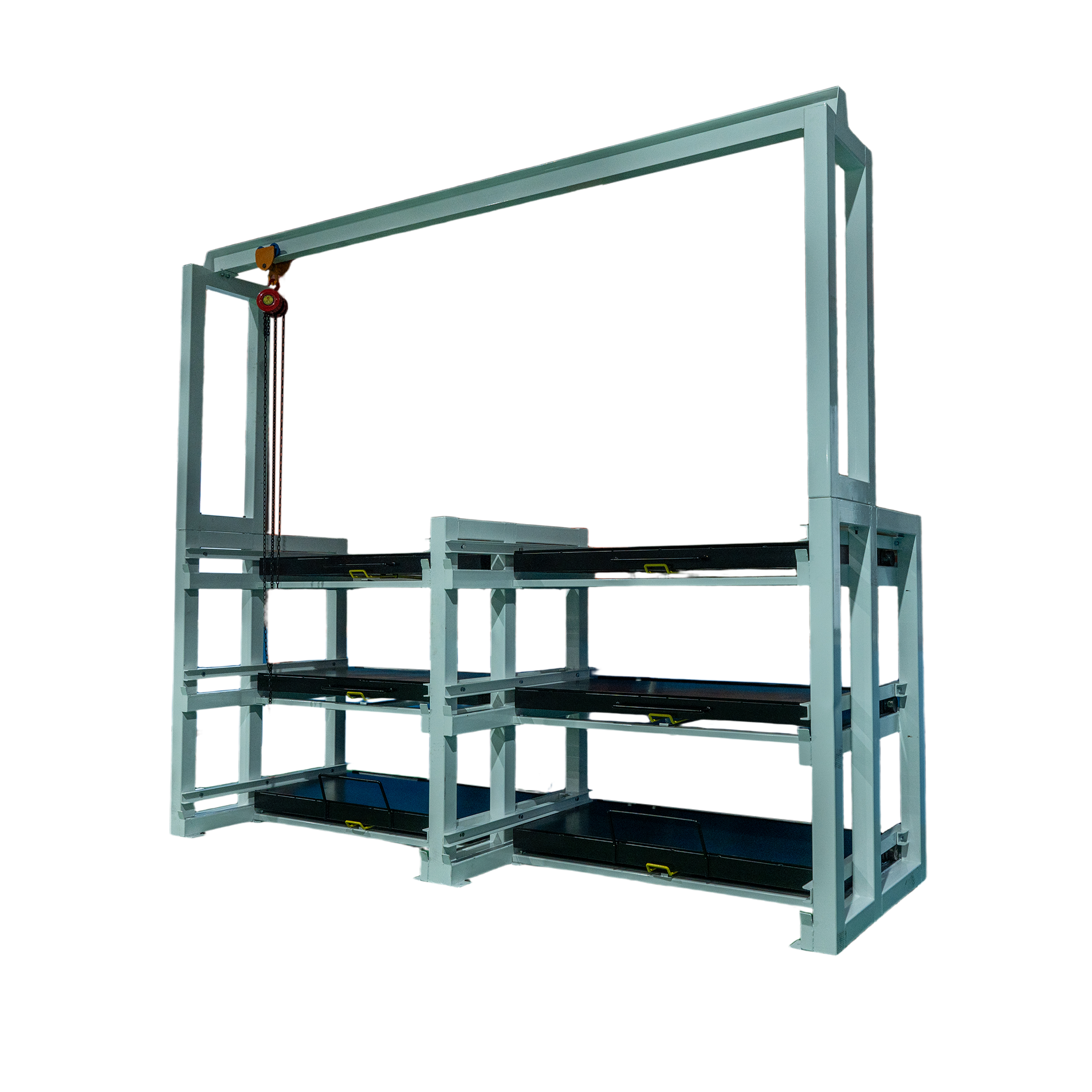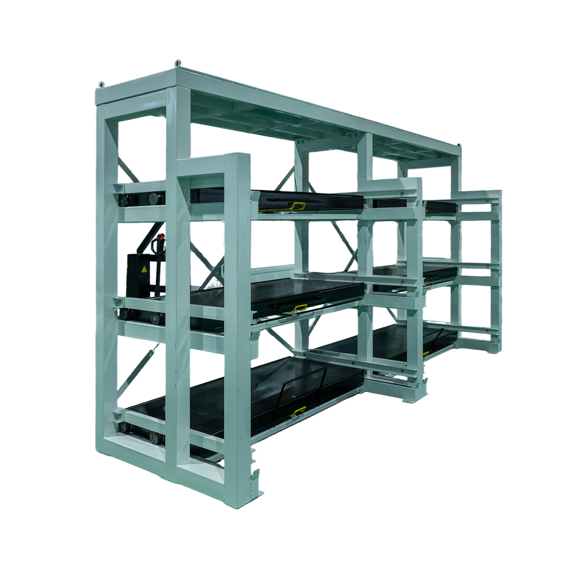 スライドラック(金型ラック・金型収納ラック・スライダーラック)は、金型・治具の立体収納を実現し、省スペース化と職場環境の整備に寄与します。